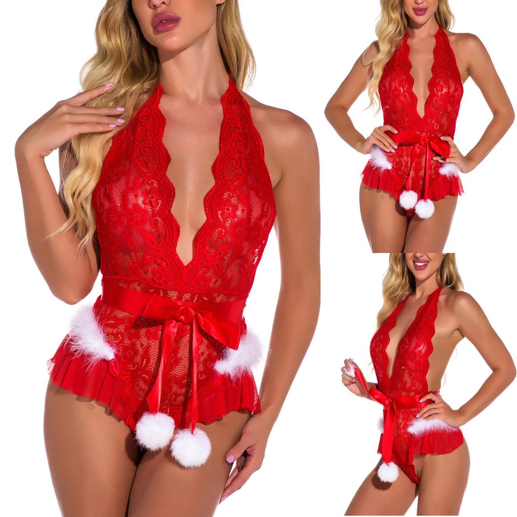Women's Sexy Underwear Neck See-Through Lace And Bow Underwear