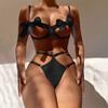 Women's Sexy Solid Color Lace Bow Leakage Two-piece Underwear Set With Steel Ring