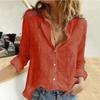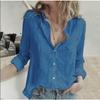 Damenmode, lässig, Frühling und Herbst, einfarbig, langärmelig, Polo-Ausschnitt, Blusen und Hemden