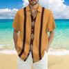 Herren Modisches Lässiges Lockeres Gestreiftes Bedrucktes Strand Kurzarmhemd