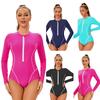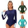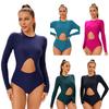 Damen Langarm Konservativer Einteiler Sexy Sonnenschutz Neoprenanzug mit Brustpolster Badeanzug