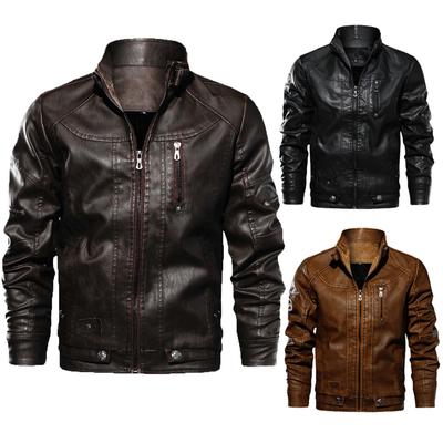 Winter Herren Casual Stehkragen Motorrad Lederjacke Mantel