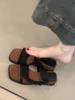 Schaffell-Version~ Echtes Leder Retro Ein-Wort mit dicken Sohlen und zwei Zehensandalen für Damen Sommer-Keilsandaletten coole Hausschuhe