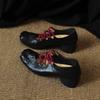 Rindslederversion~ flacher dicker Absatz einzelne Schuhe Damen Xia Xin plissiertes Kreuz-Gummiband eckige Spitze mittlerer Absatz Mary Jane Schuhe