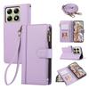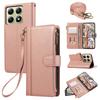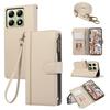 For Xiaomi 14T Case Multi Card Slots Zipper Leather Phone Cover with Shoulder Strap/Wrist Strap