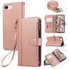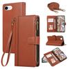 Für iPhone 16e Hülle Mehrere Kartenfächer Reißverschluss Leder Handyhülle mit Schultergurt/Handschlaufe