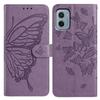 Schutzhülle mit Schmetterlingsmuster für Motorola Moto E15 4G/G05 4G: Klapphandyhülle aus PU-Leder mit Ständer und Tragegurt