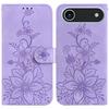 Für iPhone 17 Air Ständerhülle Lily Flower Prägung Leder Handyhülle mit Handschlaufe