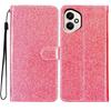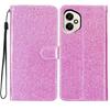 Für Honor 400 5G (Global) Glitzernde Kratzfeste Leder-Ständer-Handyhülle mit Riemen