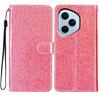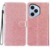Für Honor 400 Pro 5G (Global) Glitzernde Kratzfeste Leder-Ständer-Handyhülle mit Riemen