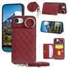 Für iPhone 16e Hülle Ständer Rautenmuster Leder+TPU Handyhülle mit Schultergurt