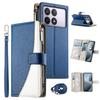 Lederhülle für Xiaomi Poco F6 Pro 5G/Redmi K70 Pro 5G/K70 5G Reißverschluss-Geldbörse Farbspaltung Klapp-Handyhülle mit Riemen