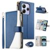 For Xiaomi Redmi Note 14 5G Case Zipper Wallet Color Splicing Leather Flip Phone Cover with Straps