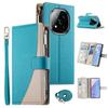 Für Xiaomi Redmi Note 14 Pro 4G Hülle Reißverschluss-Geldbörse Farbspaltung Leder Klapp-Handyhülle mit Riemen