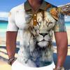 Poloshirt für Herren mit Tiermotiv, 3D-Wolf- und Adler-Aufdruck, hochwertige Herrenbekleidung, Sommer, lässig, kurzärmelig, lockeres, übergroßes Hemd, Tops, T-Shirt