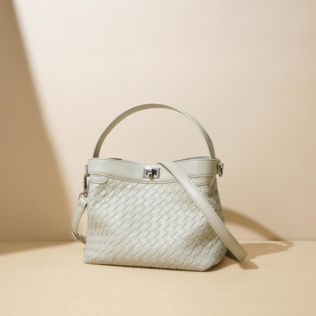 This bag has a stylish, woven - texture silhouette crafted from cowhide leather. It features an exquisite hand - woven pattern, a top handle, and an adjustable shoulder strap. The unique texture and elegant design make it a standout accessory.