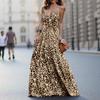 ZANZEA Damen Leopardenmuster Sexy V-Ausschnitt Träger Urlaub Slipkleid