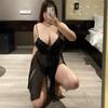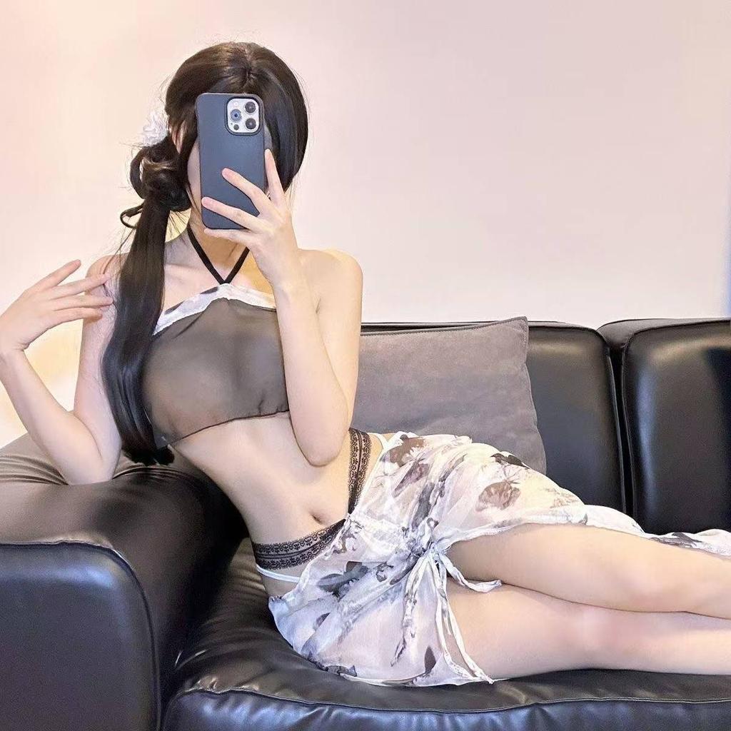 Sexy underwear new Chinese ink butterfly printing belly pocket nightdress set sexy pure desire perspective temptation