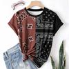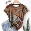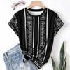 Sommer Rundhals Kurzarm Damen T-Shirt mit 3D Element Muster Locker Atmungsaktiv Leichtes Stoff Shirt