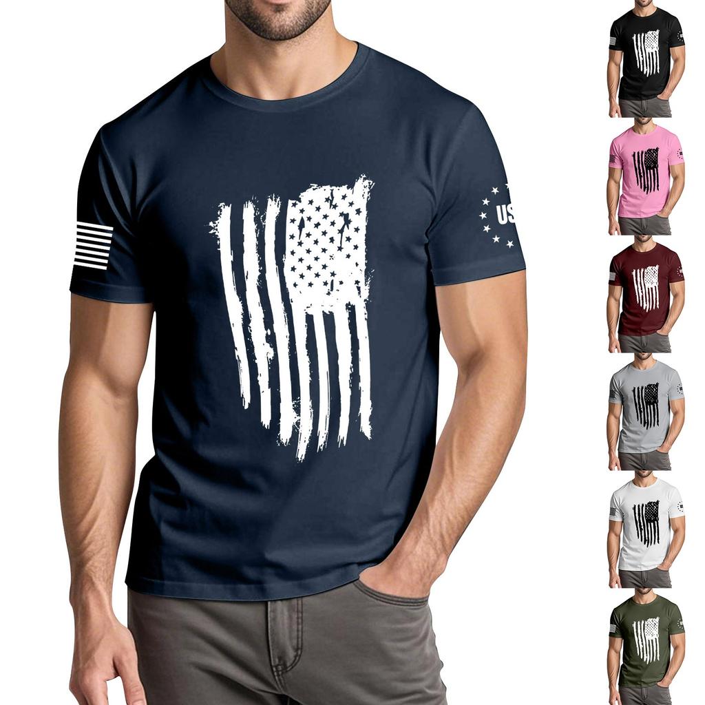 Herren Modisches Lässiges Unabhängigkeitstag Bedrucktes Rundhals Kurzarm T-Shirt Top