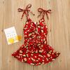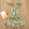 Sommer-Mädchen-Overall, ärmellos, Sling, kleiner Blumendruck, Kletteranzug