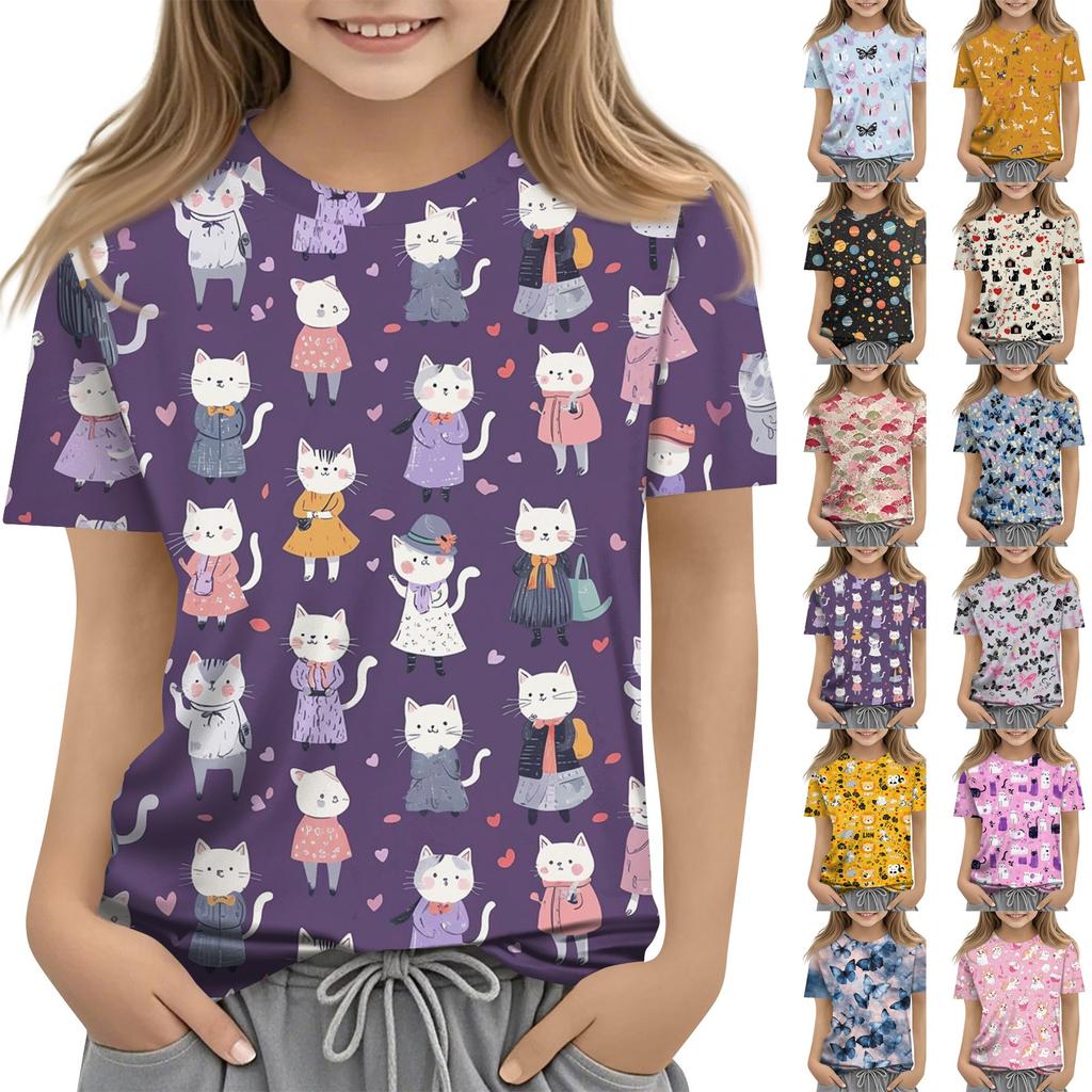 Kinder Mode Lässig Kurzarm Tier Floral Print Rundhals T-Shirt Top
