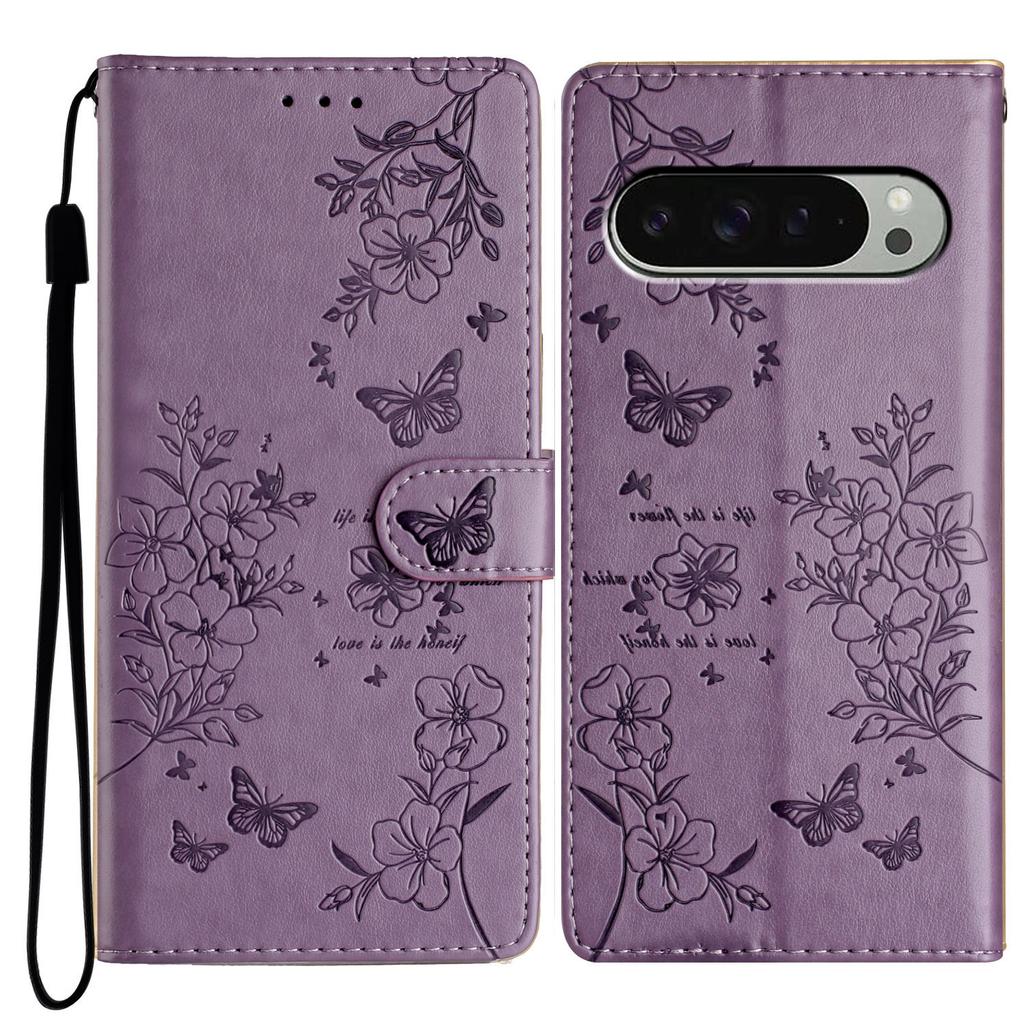 Für Google Pixel 9 Pro/Pixel 9 Brieftaschen-Handyhülle Schmetterling Floral Prägung Leder Klapphülle
