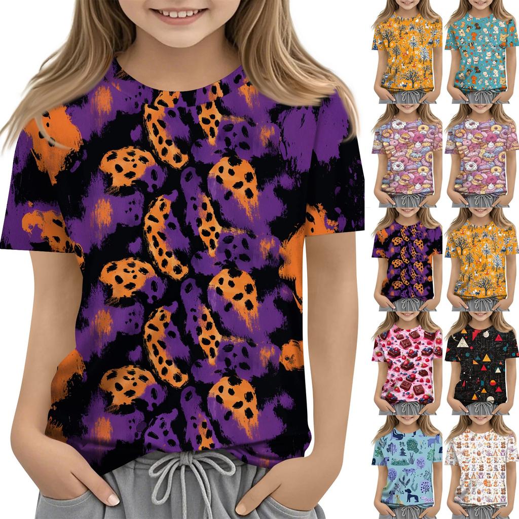 Kinder Mode Lässig Kurzarm Tier Floral Print Rundhals T-Shirt Top