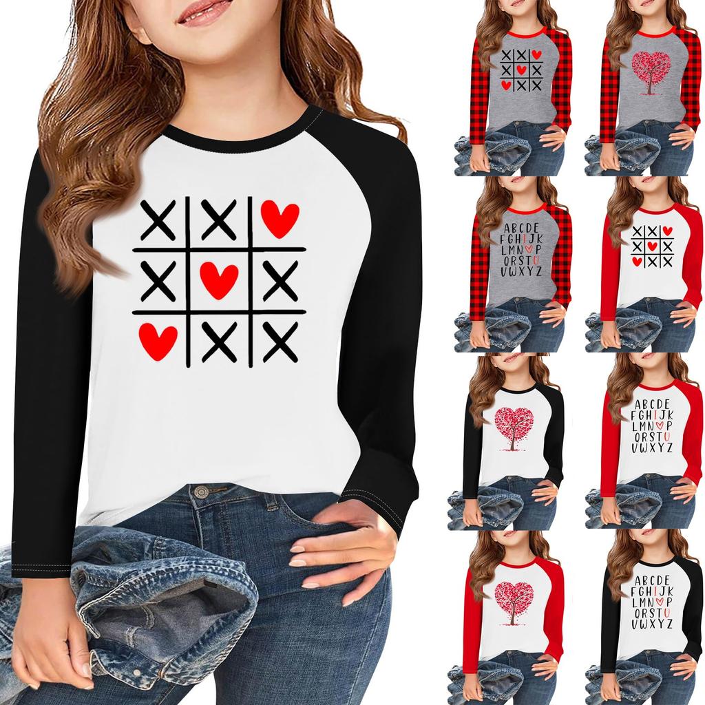 Mädchen Langarm Liebe Valentinstag T-Shirts Kinder Herbst Oberteile Rundhals Basic T-Shirts 5-14J