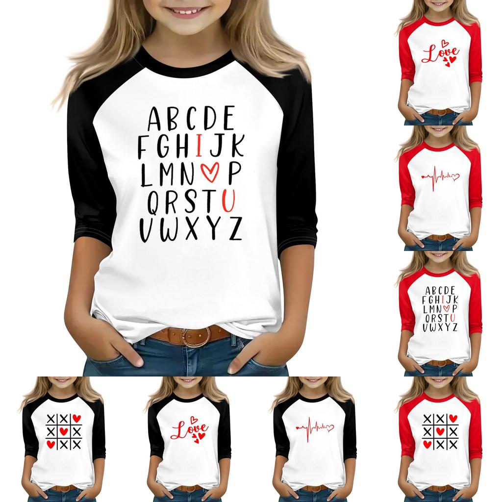 Oberteile für junge Mädchen von 4–16 Jahren, Rundhalsausschnitt, 3/4-Ärmel, T-Shirts, trendige Oberteile, Outfit-T-Shirts