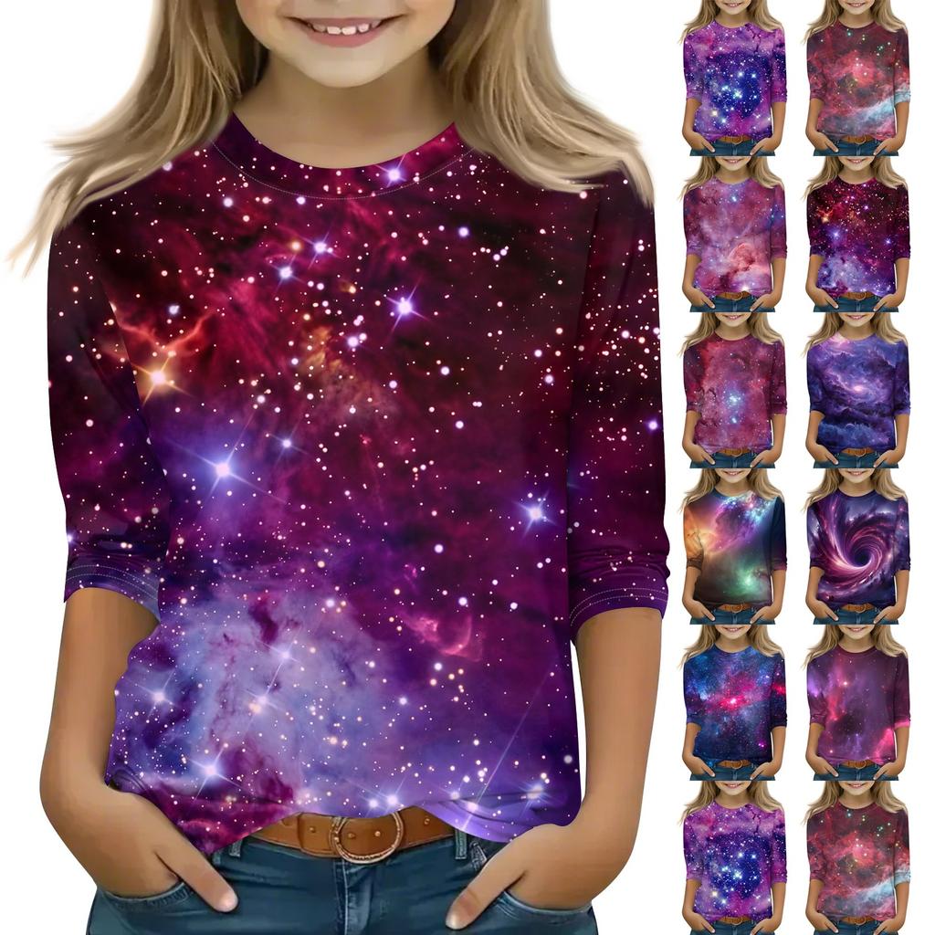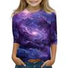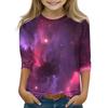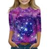Bedruckte Oberteile für junge Mädchen von 5–16 Jahren, Rundhalsausschnitt, 3/4-Ärmel, T-Shirts, trendige Oberteile, Outfit-T-Shirts