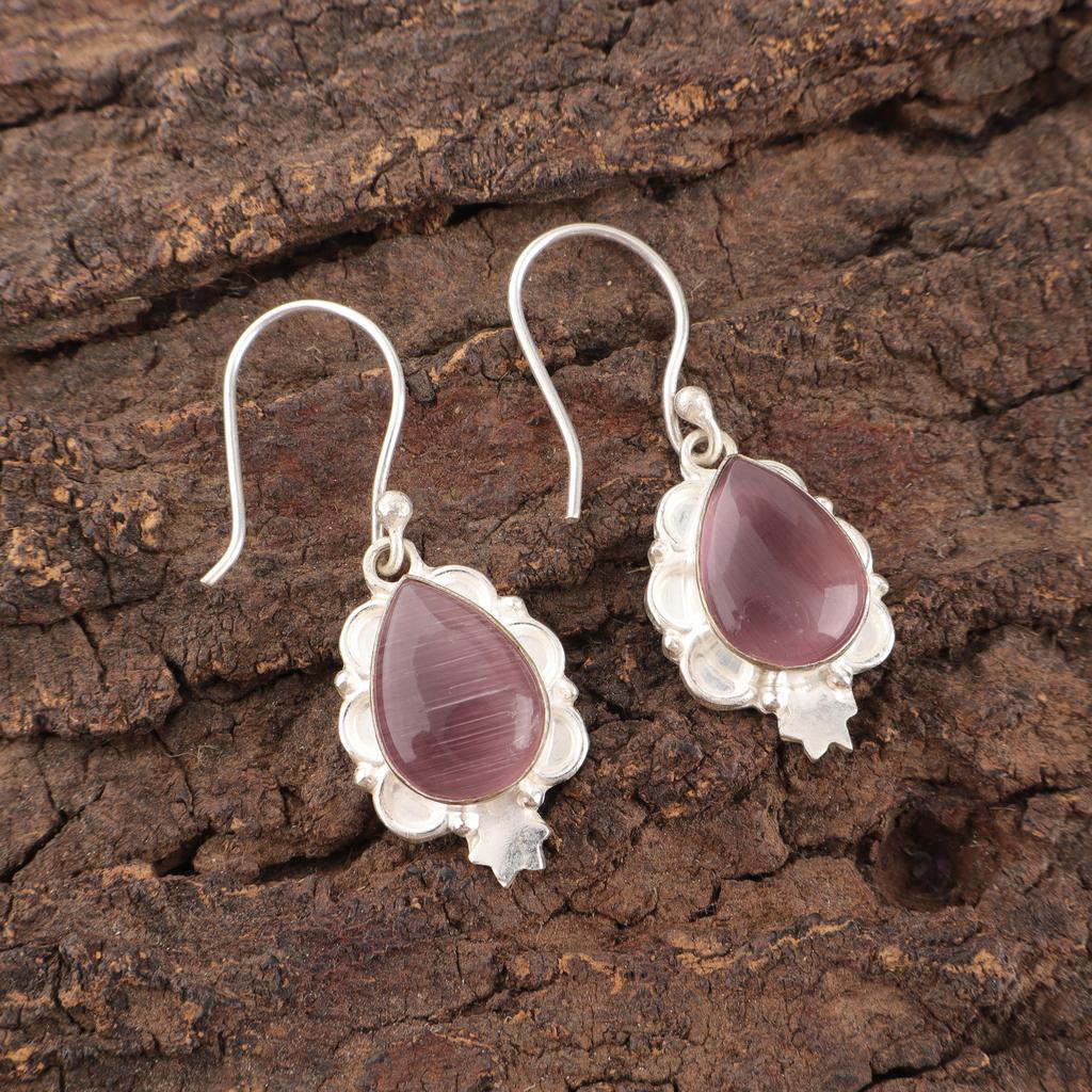 Violette Katzenaugen 925 Sterlingsilber Ohrringe, Handgefertigter Silberschmuck, Wunderschöne Katzenaugen Edelstein Ohrringe Zierlicher Schmuck Zum Verschenken