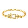 Handle Heart: A dainty bangle with a symbolic knotted heart hook that will stylishly tie your wrist. The hook type is perfect for busy mornings as it can be easily attached with one touch, and the simple and elegant lines make it perfect for the office.