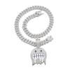 Herren Weiß Blau Zirkonia Gepflastert Hip Hop Runde Anhänger Halsketten mit Kubanischer Kette Iced Out Bling CZ Mode Jungen Schmuck
