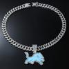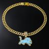 Herren Damen Hip Hop Blauer Wolf Anhänger Halskette Mit 13mm Kristall Kubanische Kette HipHop Iced Out Bling Halsketten Mode Charm Schmuck