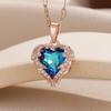 1 Stück Romantisches Paar Glasbesetzter Bronze Zirkon Ozean Herz Anhänger Kombination aus Titanstahlkette