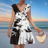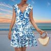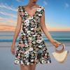 Damenmode Lässig V-Ausschnitt Wellenkante Blumendruck Kurzarmkleid