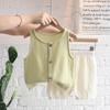 Sommer Dünnes Ärmelloses Cardigan-Set Einfarbige Lässige Kinder-Sets Weste+Shorts Zweiteiliges Set