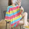 Color Stripes Contrast Color Summer 2025 Large Wide Women's Top Women's Short Sleeve T-Shirt Crew Neck