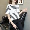 Ice silk knitted sweater women's summer 2025 new pullover round neck thin horizontal striped short sleeve embroidery women's clothes