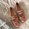 Schafsleder-Version~ Samt-Ballerinas mit flachem Absatz für Damen, Doppelschnalle, Schleife, Retro-Einzelschuhe