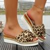 Hausschuhe Damen Sommerbekleidung dicksohlige hochhackige Ein-Wort-Schleppe Mode Keilabsatz Leopardenmuster und coole Hausschuhe große Größe
