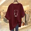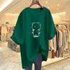 White medium and long bear print T-shirt women's summer 2025 new butt cover large size loose long t-shirt