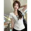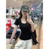 Basic solid color shoulder short-sleeved T-shirt women's summer sweet and hot girl U-neck waist pinch slim and thin cotton short top