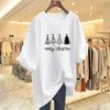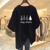 100% pure cotton new round neck medium and long short-sleeved versatile casual large size thin letter printing loose T-shirt women