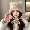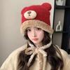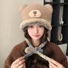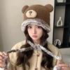 Niedliche Bärenmütze Tasche Ein Hut Doppelzweck Winter Gesicht Klein Thermisch Kordel Plüsch Gestrickte Wollmütze