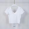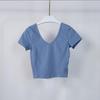 Damen V-Ausschnitt U-Rücken Nylon Yoga T-Shirt – Kurzarm, Sexy Enganliegend, Schönes Rückendesign