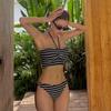 Luxuriöser koreanischer gestreifter trägerloser zum Binden mit Schlitz Bikini Badeanzug für Damen