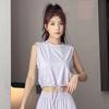 Women's Black Sun Protection Sportswear Set: Summer Quick-Dry Fitness Top & High-Waisted Wide-Leg Pants