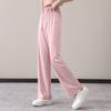 Women's Summer Casual Sportswear Set: 2024 Loose Long Sleeve Yoga Top with Sun Protection and Ice Silk Straight-Leg Pants